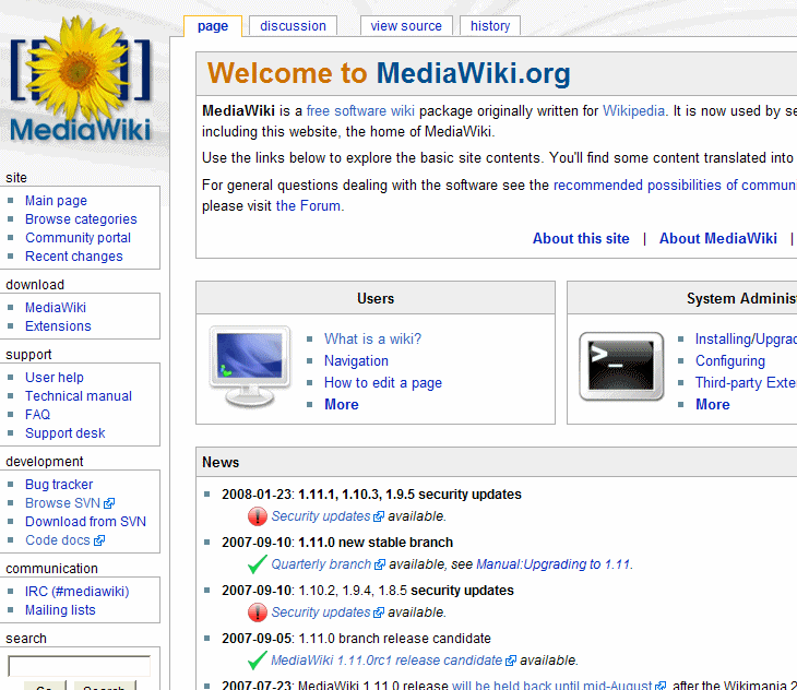 Die erste Version meines Blogs habe ich noch mit Mediawiki betrieben. Ich wollte mir eine richtige Wissensdatenbank aufbauen. Stabil, wenig Probleme, hervorragend um Beiträge zu verknüpfen. Ich habe mich dennoch davon abgewandt, weil ich nicht sehr zufrieden mit der Verwaltung und Erstellung der Inhalte gewesen bin. Ich wollte dann doch eher etwas mit einem chronologischen Verlauf haben, weniger ein Netzwerk aus Beiträgen. Zudem habe ich die Entscheidung getroffen, dass Beiträge künftig in dem standardisierten HTML geschrieben werden sollen und nicht mehr mit dem sehr eigenen Wiki-Markup.