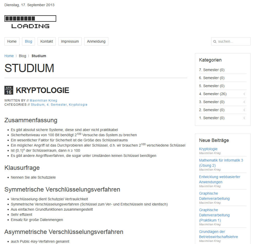 Mit abgeschlossenem 4. Semester habe ich mir vorgenommen endlich die Beiträge aus meinem alten WordPress heraus zu holen, aufzubereiten und Stück für Stück in mein neues System einzupflegen. Ich finde das ist ein guter Anlass einen kurzen Rückblick durch die Meilensteine des Blogs zu geben.