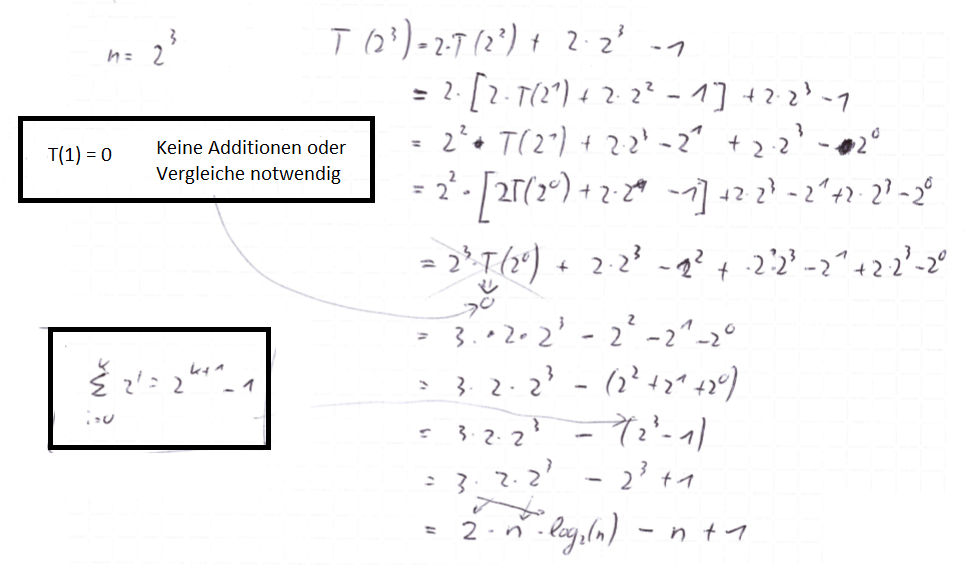• T(n) ist die Anzahl der Additionen und Vergleiche