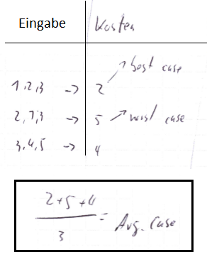 • Der average case orientiert sich an einem gleichverteilten Erwartungswert von \( \frac{1}{\text{Eingaben } E_n} \)